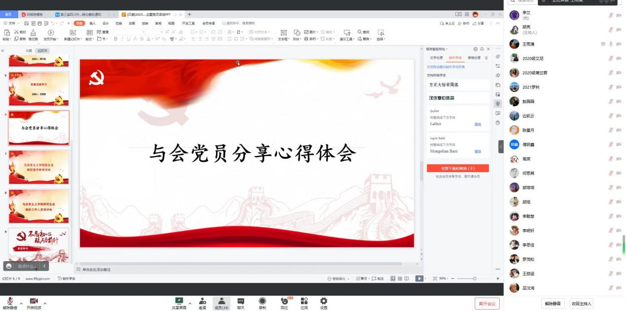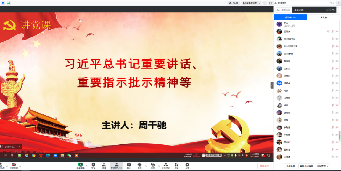 4月21日下午,太阳成集团tyc122ccvip研究生党支部于腾讯会议线上开展4月主题党日活动。本次主题党日活动由研究生党支部书记王雨潇同志主持,支部全体党员参会。