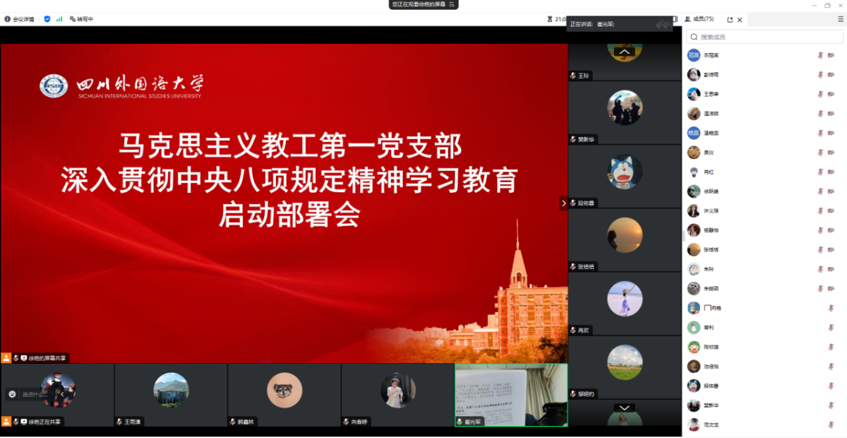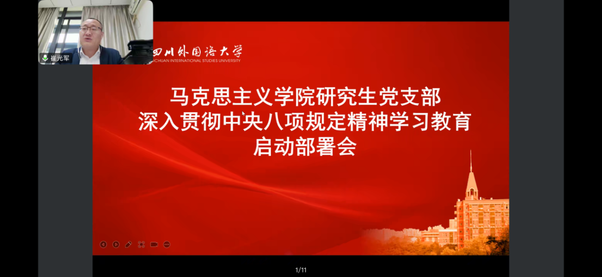 研究生支部书记王雨潇讲到,支部党员要认真学习领会习近平总书记关于加强党的作风建设的重要论述,贯彻落实中央八项规定精神。