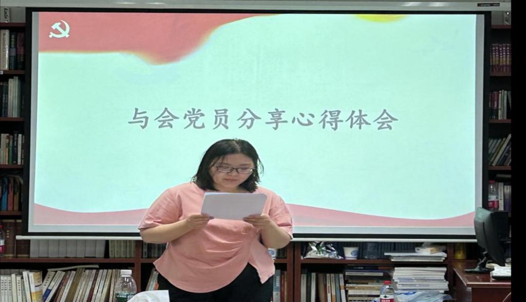 其次,开展研究生党支部六月主题党日活动。由陈昌强同志和何慧敏同志带领大家分别学习了《习近平新时代中国特色社会主义思想专题摘编》和袁家军书记在调研我市主题教育开展情况座谈会上的讲话精神。随后,与会党员分享学习心得。谈昕表示要做到学思用贯通,知信行统一为目标,做出了四点学习要求,予以大家共勉。刘玉淋同志指出作为新时代青年我们要担起历史责任,为努力完成党的二十大擘画的宏伟蓝图而奋斗。