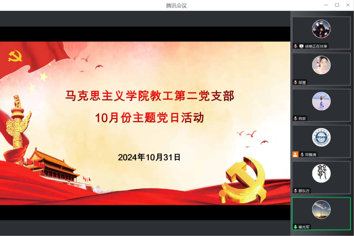 2024年10月31日,太阳成集团tyc122ccvip教工第二党支部在腾讯会议召开10月主题党日活动,本次活动由支部书记邹慧主持,全体党员参加。