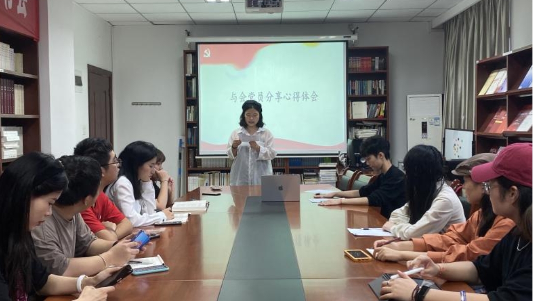 张杰同志领学习近平总书记在主持二十届中共中央政治局第八次集体学习时的重要讲话精神,刘玉淋同志领学在文化传承发展座谈会上的讲话。随后,与会党员分享心得。张奉同志表示我们很多同学将来都会成为思政课教师,要尽好“传大道”责任、提高“授大业”本领、增强“解大惑”能力。孙铭同志指出要牢牢把握总要求、紧紧锚定目标任务、全面落实重点措施。