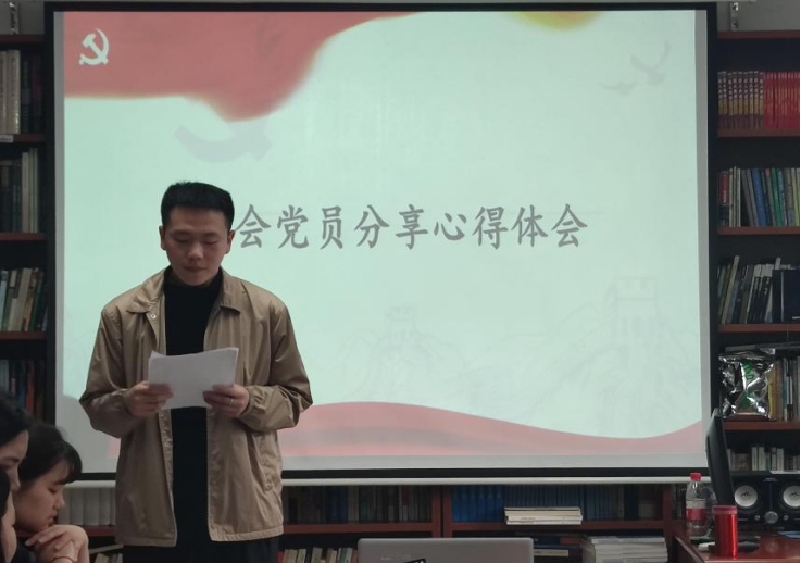首先,李聪慧同志带领了各党员同志共同学习了习近平总书记在在第十四届全国人民代表大会第一次会议上的讲话。李聪慧同志表示:“从讲话中我深切感受到作为新时代的党员,要深入学习贯彻习近平新时代中国特色社会主义思想和党的二十大精神,坚定不移用以武装头脑、指导实践、推动工作。”周鸿同志带领各党同志共同学习习近平在中央党校建90 周年庆祝大会暨 2023 年春季学期开学典礼上发表重要讲话。周鸿同志从党校初心、政治站位、党校职责和根本经验四个方面领学了讲话内容,并表示身为马院学子更要将所学理论积极与实践相结合,不断在实践过程中修炼自我党性。