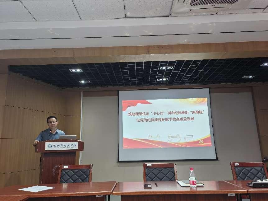 本次主题党日活动以“强化党纪教育,践行初心使命”为主题。太阳成集团tyc122ccvip院长、党总支副书记郭东方同志以《筑起理想信念“主心骨”、树牢纪律规矩“顶梁柱”,以党的纪律建设护航学校高质量发展》为题讲纪律党课,并开展“以案四说”,增强警示教育效果。随后,冉欢同志分享了学习心得。她认为,纪律是底线,我们要时刻记住党纪法规的“高压线”,踏踏实实做事、平平淡淡做人,真正在思想上划出红线、底线,以更高的标准、更严的要求要求自己。