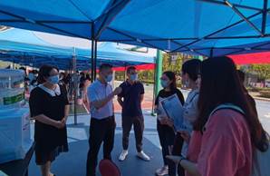 学院党总支书记、院长钟谟智带领班子成员、学工队伍到风雨操场迎接新生,与新生亲切交谈,询问寝室入住情况、饭食和气候是否适应,提醒新生及时做好核酸检测和个人防疫,让每一个新生都能在川外住的安心、过的舒心。