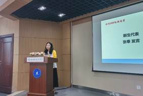 随后,新生代表张奉同学代表新生做出了对未来三年新生活的展望并提出了几点期盼,老生代表徐畅送上了对学弟学妹们的祝福,学院教师代表、硕士生导师程波为新同学介绍了学院的学科发展情况,也为同学们提出了学习的建议和对未来的期许。
