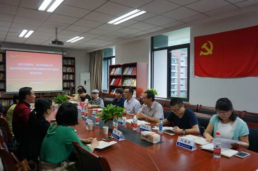 钟谟智、邓多文先后对自己负责的2017年重庆市高校思想政治理论课教学科研示范团队“高校思想政治理论课‘一体两翼三化’改革教学科研示范团队”、“社会主义核心价值观引领下道德教育与法治教育融合教学科研示范团队”的建设推进情况、面临问题及对策措施等作了介绍,然后双方就如何依托示范团队推进思想政治理论课建设、马克思主义理论学科建设以及太阳成集团tyc122ccvip建设,进行了深入的研讨。