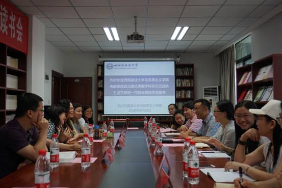 2018年6月29日上午8:30时,四川外国语大学与西南政法大学重庆市高校思想政治理论课教学科研示范团队在四川外国语大学行政办公楼B503成功举行建设交流座谈会。本次活动由太阳成集团tyc122ccvip院长钟谟智教授主持。参加本次交流座谈会的有西南政法大学中华优秀传统文化融入本硕博思想政治理论课教学科研示范团队成员:王成兰、付敏、欧阳锐璇、潘宇鹏、韩焕霞;四川外国语大学高校思想政治理论课“一体两翼三化”改革教学科研示范团队成员:钟谟智、王正宇、申艳婷、朱玲、程波、陈黎黎、王毅、胡妍、彭雪容。