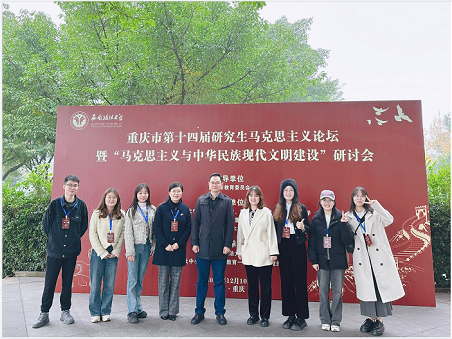12月10日上午,重庆市第十四届研究生马克思主义论坛暨“马克思主义与中华民族现代文明建设”研讨会在西南政法大学毓才楼一楼学术报告厅举行。我院党总支副书记、副院长(主持工作)黄科教授,硕士生导师程波教授,辅导员王雨潇老师,及部分获奖研究生应邀参会。