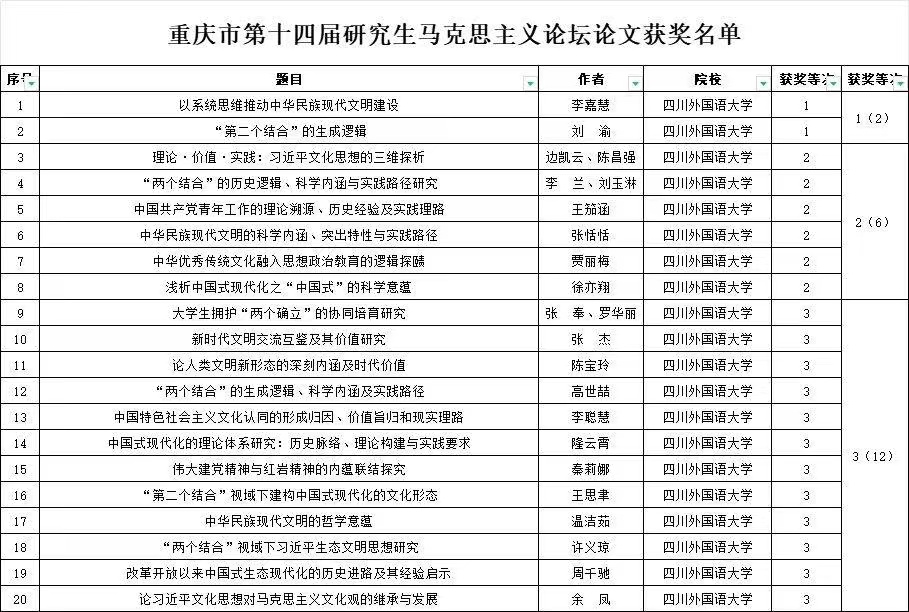 附:太阳成集团tyc122ccvip重庆市第十四届研究生马克思主义论坛论文获奖名单