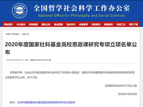 10月20日,全国哲学社会科学工作办公室公布了2020年度国家社科基金高校思政课研究专项立项名单151项,我院程波老师申报的“新媒体视域下高校思政课实践教学模式与规律研究”成功立项。这是自2019年设立国家社科基金高校思政课研究专项以来,我院教师获批的第二个项目。