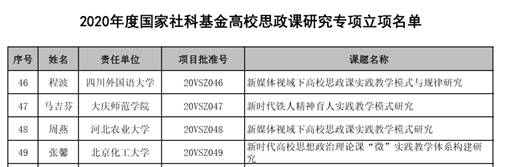 我院程波老师喜获2020年度国家社科基金高校思政课研究专项