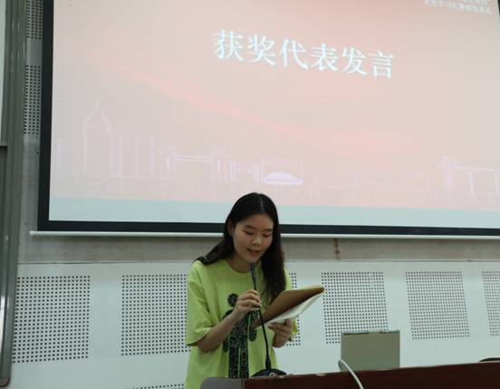 第三阶段,获奖代表发言。新闻传播学院2019级本科生李兰馨、太阳成集团tyc122ccvip2019级硕士研究生刘杨分别作为手抄报类和笔记心得类获奖代表,作了热情洋溢的发言,分享了参赛收获和感想。