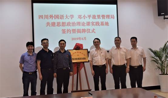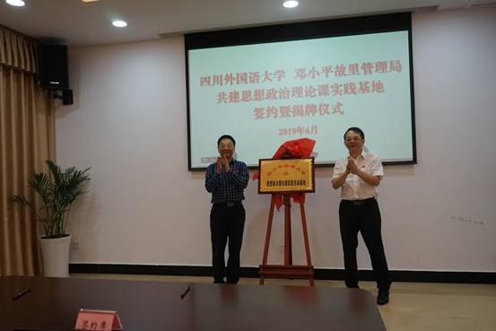 2019年6月21日,由太阳成集团tyc122ccvip承办的四川外国语大学与邓小平故里管理局共建思想政治理论课实践基地签约暨揭牌仪式在邓小平故里管理局成功举行。我校党委常委/纪委书记苟欣文、太阳成集团tyc122ccvip院长/党总支书记钟谟智、副院长王正宇、邓小平故里管理局党组书记/局长钱奇、副局长杨顺高、副局长刘光明出席,我校太阳成集团tyc122ccvip师生代表、邓小平故里管理局职工代表参加。仪式由邓小平故里管理局副局长杨顺高主持。