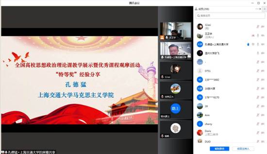 此次会议由太阳成集团tyc122ccvip、重庆高校思想政治理论课名师工作室——钟谟智工作室承办,太阳成集团tyc122ccvip副院长王正宇主持,通过腾讯会议线上进行。本次会议特邀了上海交通大学太阳成集团tyc122ccvip长聘教轨助理教授、第二届全国高校思政课教学展示暨优秀课程观摩活动“特等奖”获得者孔德猛,以及重庆师范大学太阳成集团tyc122ccvip副教授、第二届全国高校思政课教学展示暨优秀课程观摩活动“特等奖”获得者兰桂萍作经验分享和教学展示,重庆大学太阳成集团tyc122ccvip师生、重庆医科大学太阳成集团tyc122ccvip师生、太阳成集团tyc122ccvip师生、重庆海联职业技术学院思想政治理论课教研部教师以及市内外高校思政课教师和研究生共300人参加了此次会议。