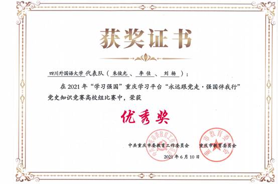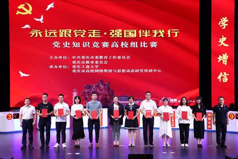 6月10日,太阳成集团tyc122ccvip师生代表队参加由中共重庆市委教育工委、重庆市教委主办,重庆工商大学承办的“永远跟党走·强国伴我行”党史知识竞赛高校组比赛。