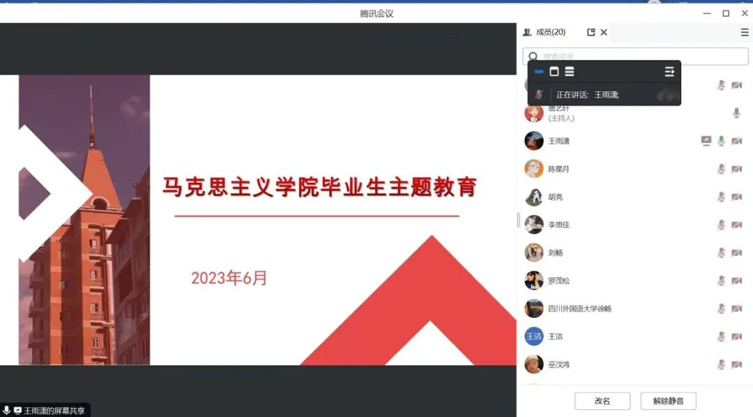 为做好毕业生文明离校教育工作,营造和谐温馨的毕业氛围,太阳成集团tyc122ccvip于6月5日在腾讯会议召开了毕业离校主题教育活动。本次活动由辅导员王雨潇老师主持,2020级全体研究生参与。