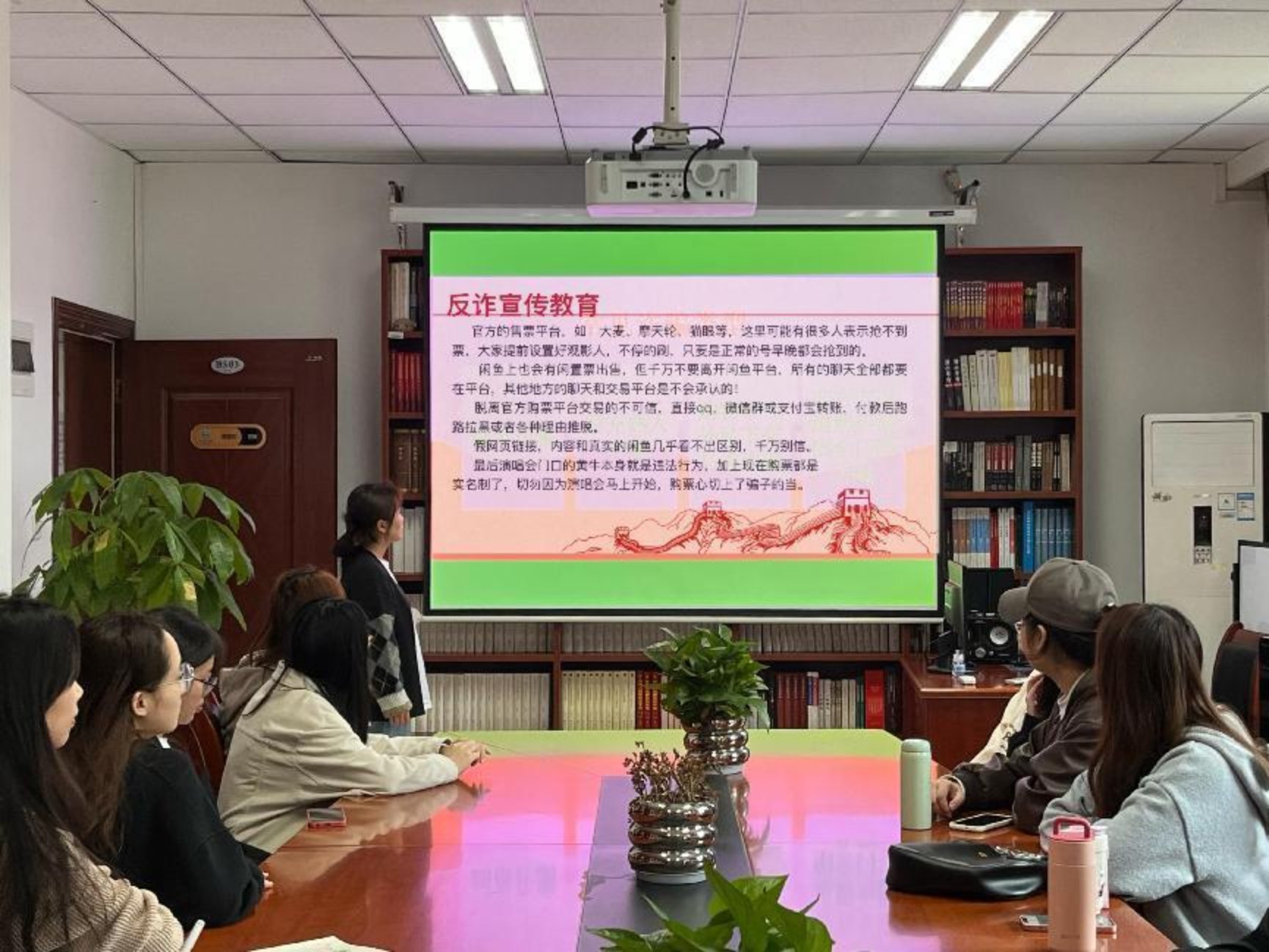 最后,团支书罗华丽向大家普及了防骗反诈知识,在正规合法网站购票、不随意给陌生人转账,提升了同学们的防范意识。