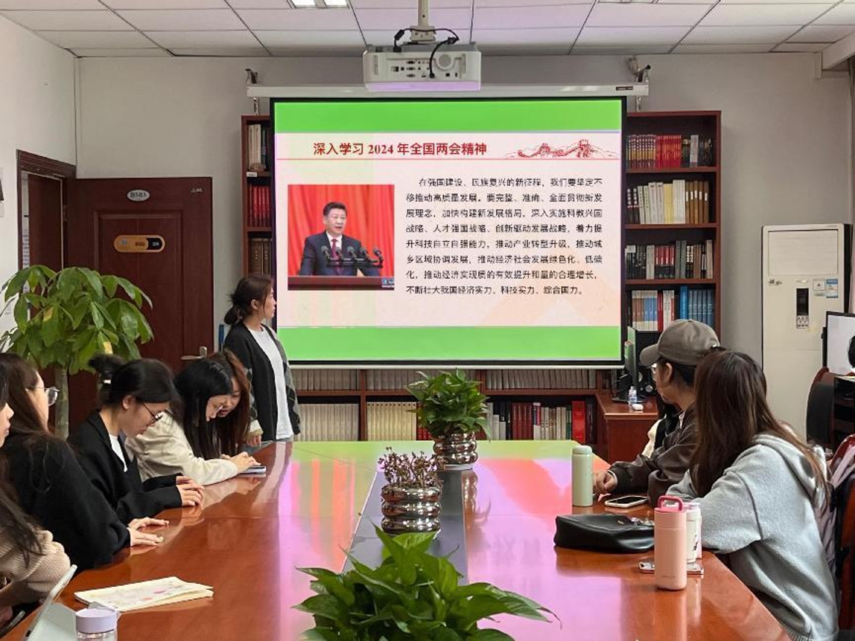 首先,同学们深入学习了2024年全国两会精神,全面把握习近平总书记关于新质生产力、科教兴国等重要论述精神,为持续推进强国建设、民族复兴伟业做出新时代青年的应有贡献。