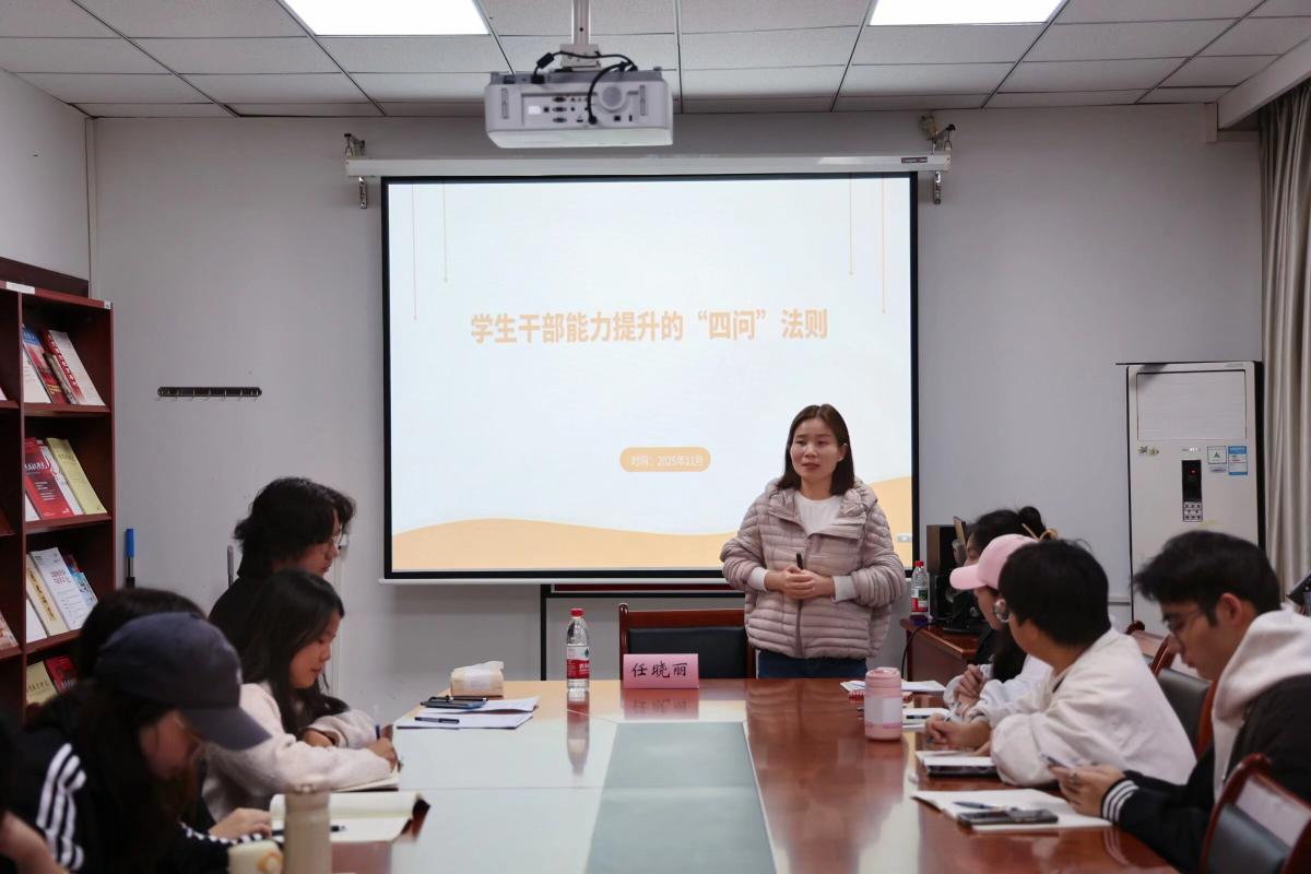 为助力学生干部明确职责定位、提升综合素养,充分发挥先锋模范作用,我院于11月5日在立德楼B503举办题为“论学生干部素养能力培养”的沙龙活动。本次活动特邀新闻与传播学院辅导员任晓丽老师担任主讲,我院马克思主义理论专业2025级1班研究生黄浩桐主持,学院全体研究生参加。