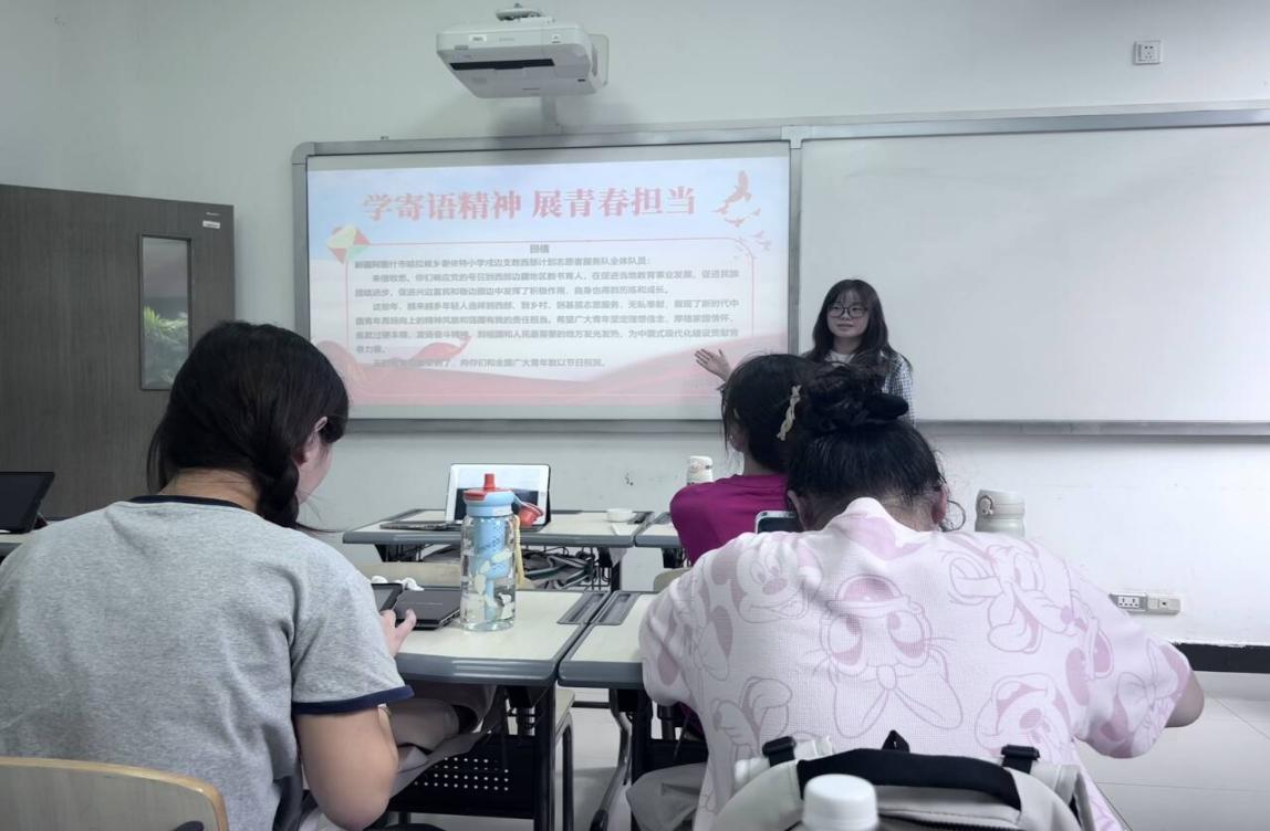 5月14日下午14点,2024级马理论1班开展“学寄语精神、展青春担当”主题班会,团支书余佩瑶带领同学们学习了习近平总书记给谢依特小学戍边支教西部计划志愿者服务队全体队员的回信原文,深入剖析了其中的精神内涵,传达了习近平总书记对广大青年坚定理想信念,厚植家国情怀,练就过硬本领,发扬奋斗精神,到祖国和人民最需要的地方发光发热,贡献青春力量的殷切期望。