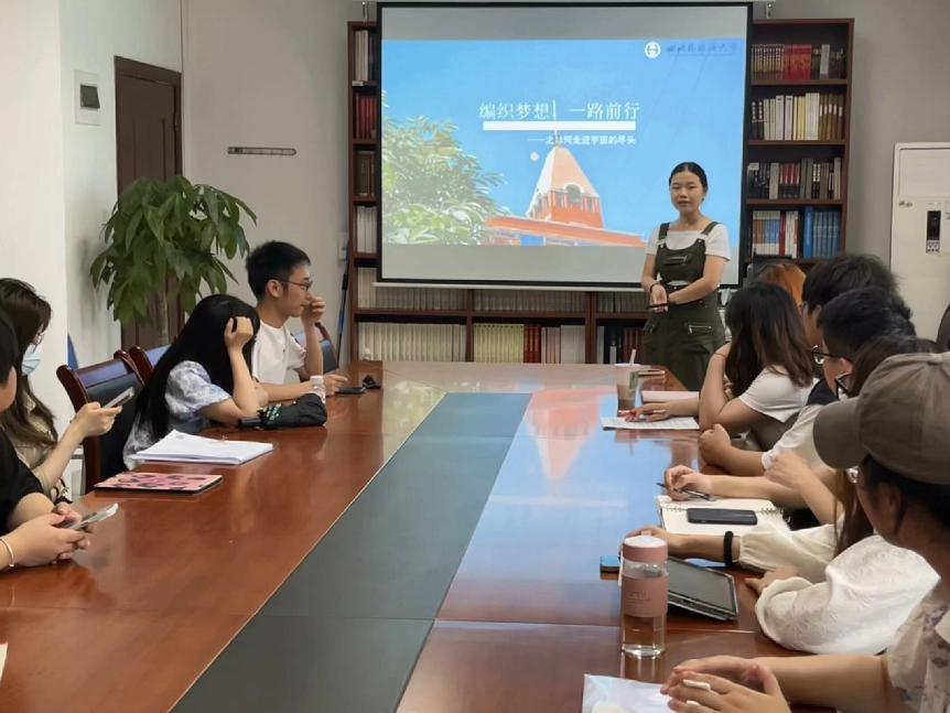 6月6日,我院在立德楼B503举办了以“编织梦想,一路前行”为主题的就业经验分享会。本次活动由2021级硕士研究生张奉主讲,我院团总支书记、辅导员王雨潇老师主持,非毕业年级研究生参加。
