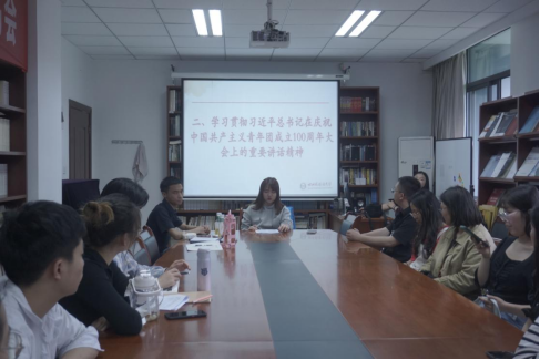 王老师首先带领大家深入学习习近平总书记在中国人民大学考察时重要讲话精神和习近平总书记在庆祝中国共产主义青年团成立100周年大会上的重要讲话精神。她指出,习近平总书记重要讲话充分体现了党中央对高等教育工作的高度重视和对青年学子的殷切期望,新时代青年大学生要牢记党的教诲,勇于担当使命,在奋斗和奉献中绽放绚丽的青春光彩!