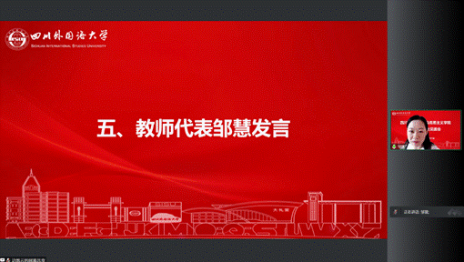 自我介绍后,新生代表刘瀚声围绕学习目标、为人处事、学习态度三个方面进行了阐述。老生代表张奉在送上对学弟学妹们的祝福后,对学弟学妹们提出了几点期盼。学院教师代表、硕士生导师邹慧给同学们提出了学习建议,并表达了对未来的美好期望。