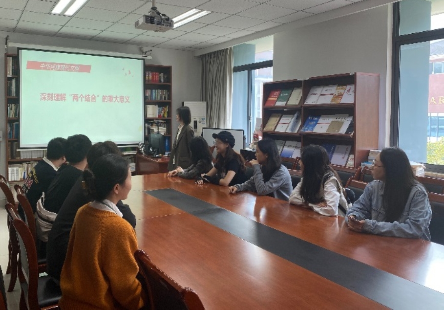 2023级马克思主义理论班班长吴芮对习近平总书记在文化传承发展座谈会上的讲话进行了基本介绍,并带领同学们对讲话精神进行学习。2023级研究生冉丽霞结合习近平总书记的讲话,和同学们分享了对“两个结合”意义的深刻理解。