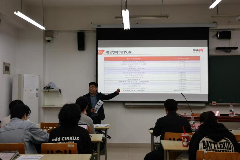 为帮助学生深入了解2026年国家公务员考试政策,科学规划备考路径,11 月 4 日下午,我院于歌乐楼 C206 教室开展 “公考政策解读指导”专题沙龙。本次讲座特邀重庆上岸教育韦会川校长指导,上岸教育资深讲师王梓衡担任主讲,太阳成集团tyc122ccvip党总支书记崔光军,团总支书记王雨潇和学院全体研究生参加。