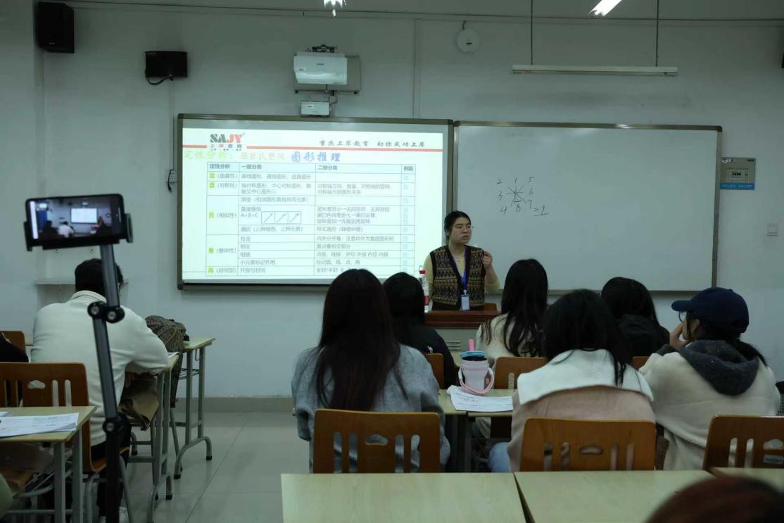 本期课程继续聚焦《行政职业能力测验》核心模块,特邀对国考、省考题型有丰富经验的辅导老师担任主讲。第二期公开课以“图形推理”为专题展开导学。学院党总支书记崔光军到场与研究生共同听课、互动,并做总结勉励。