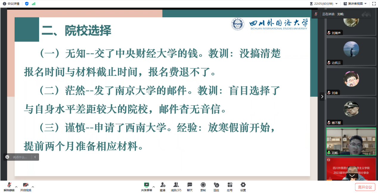 我院开展朋辈沙龙活动之2020级毕业生刘畅考博经验分享会
